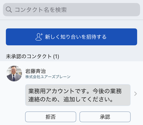 ・心当たりのないコンタクト申請に注意: 相手のプロフィール情報や、既に繋がっている同一人物のアカウントがないかを十分にご確認ください。